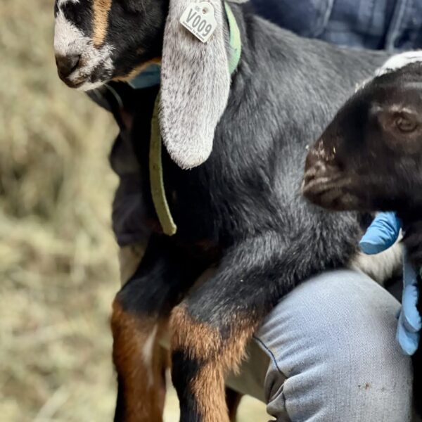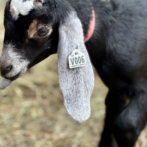 2SR / V017 is a female American Nubian doeling born on 3/3/2026. Not Registered. Dam: 0003 Peaches Pie Rams R52 – NUBIAN [RAM R52]. Sire: 0004 Sunray Grasshopper R25 – Nubian [GSHR R25].